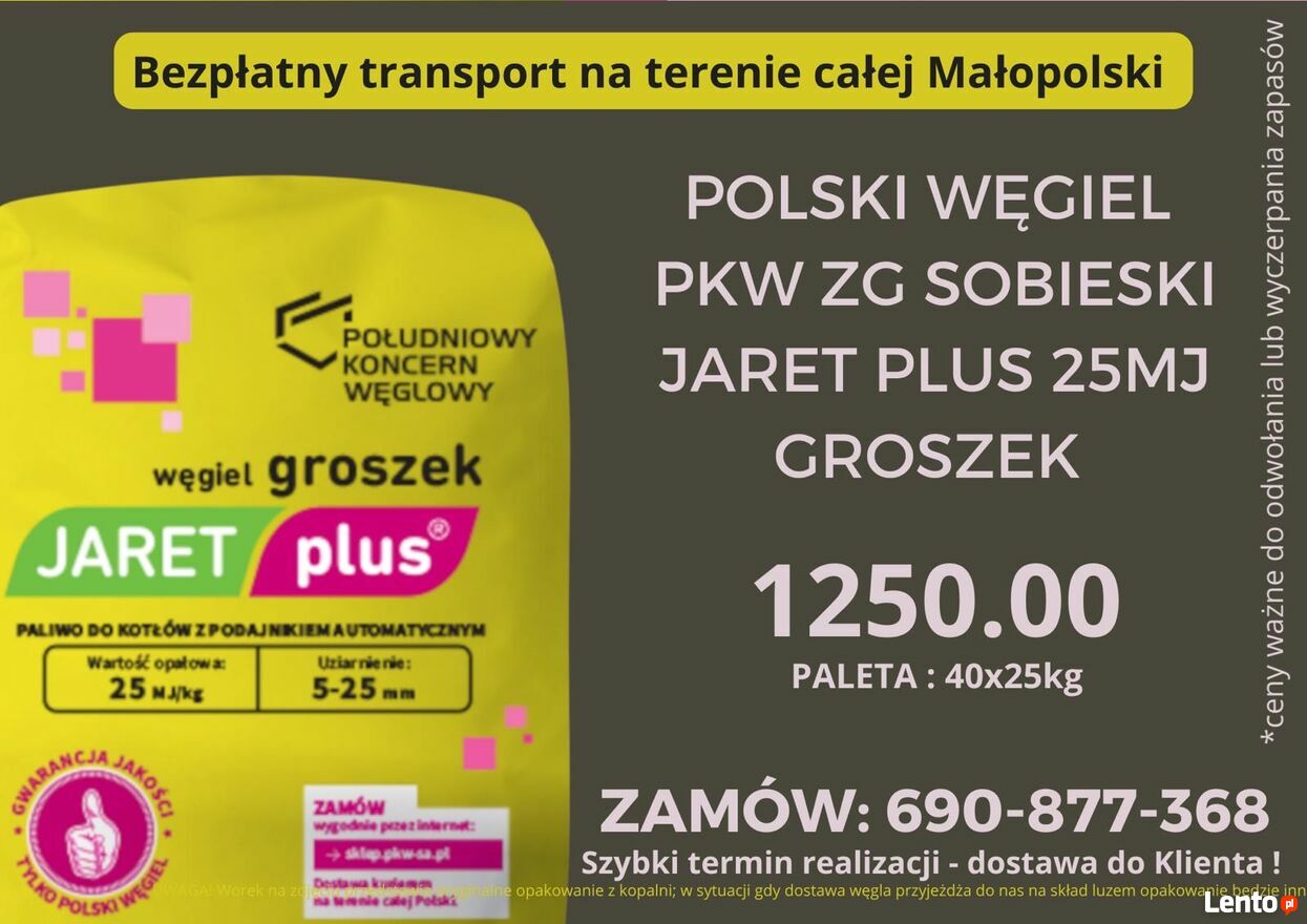 JARET PLUS 25 MJ-POLSKI WĘGIEL GROSZEK-DOSTAWA TZRYCIĄŻ