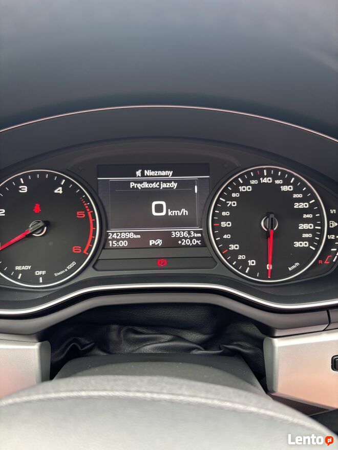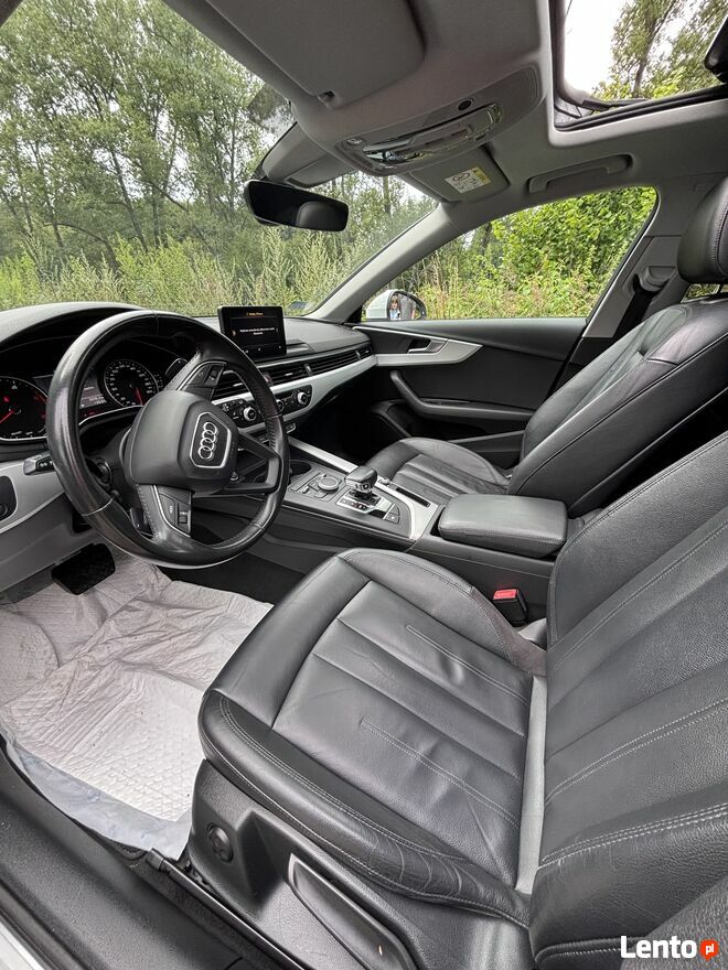 Sprzedam Audi A4 B9 z 2017 r. Auto z silnikiem 2.0 TDI 150 KM z przebiegiem 242 tys. przebieg udokumentowany wpisami w Audi i Cepik. Auto serwisowane na bieżąco – w ostatnim czasie wymieniono komplet tarcz i klocków przód i tył. Autko bardzo zadbane. Samochód był w leasingu przez niecałe 4 lata, po czym został wykupiony.Sprzedaję ze względu na zakup nowego samochodu. Sprzedającym jest osoba prywatna. Auto jest na 19” felgach z bardzo ładnym kompletem opon letnich. W komplecie też zimówki 18”.
